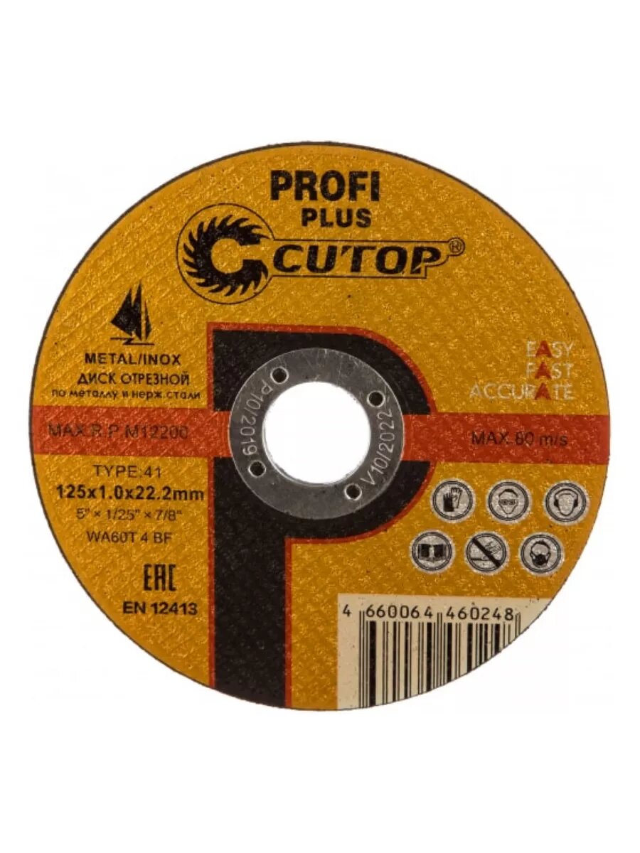 Диск отрезной по металлу и нержавеющей стали Profi Plus CUTOP, Т41-125 х 1,0 х 22,2 мм информация: