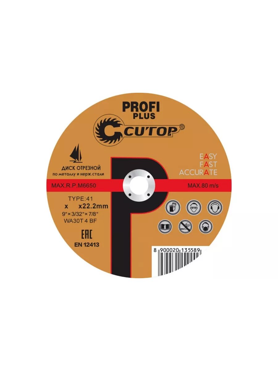 Диск отрезной CUTOP по металлу, Т41-230 х 2,5 х 22,2 мм, 6 штук 1 899 ₽