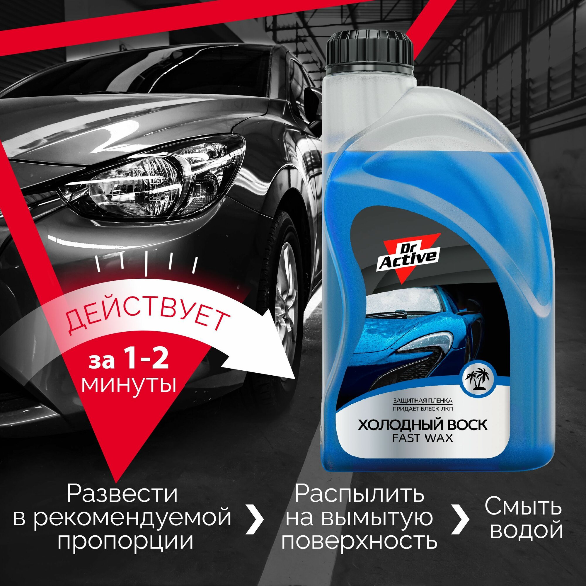 Холодный воск для автомобиля кузова Dr. Active "Fast Wax", для бесконтактной обработки автомобиля, концентрат 1 л информация: