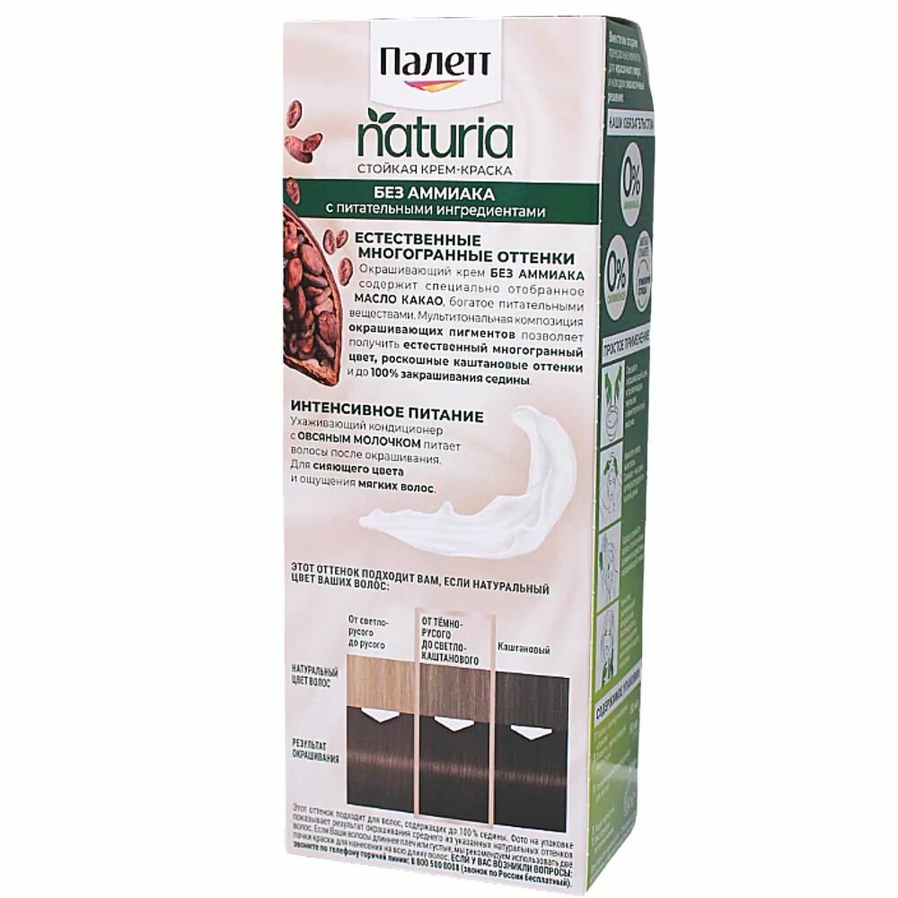 Палетт Naturia Стойкая крем-краска для волос, 5-0 светло-каштановая, 110 мл - 1 шт информация: