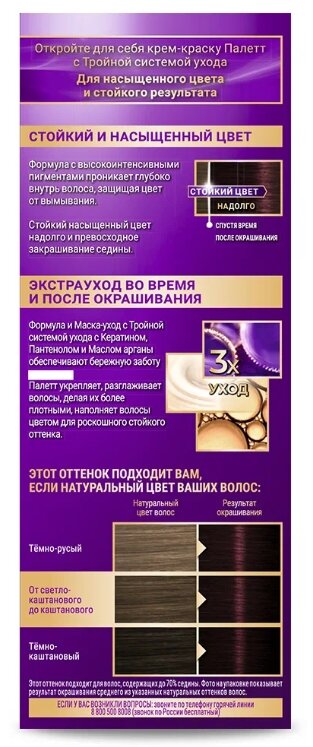 Краска для волос Palette, Палетт, Благородный каштан,100 мл,2 шт 844 ₽