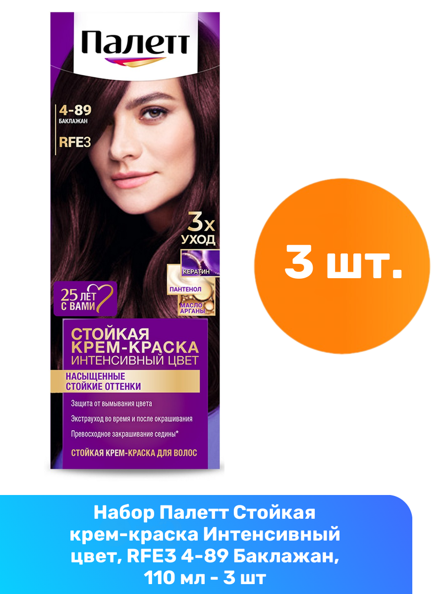 Палетт Стойкая крем-краска Интенсивный цвет, RFE3 4-89 Баклажан, 110 мл - 3 шт информация:
