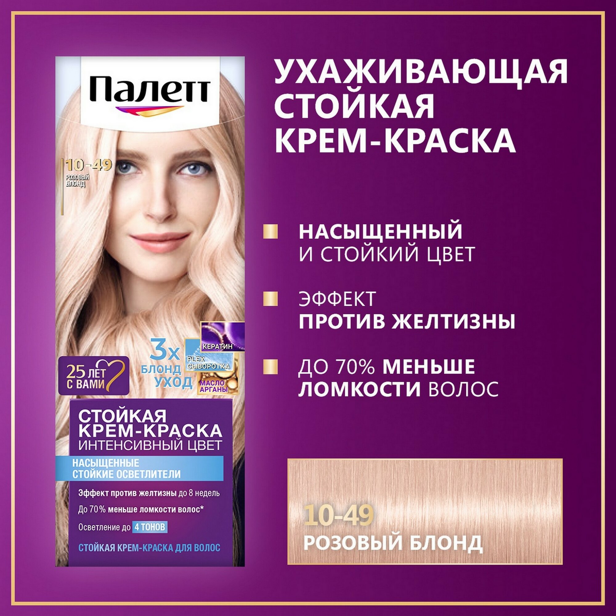 Палетт Стойкая крем-краска Интенсивный цвет, 10-49 Розовый блонд, 110 мл - 6 шт информация: