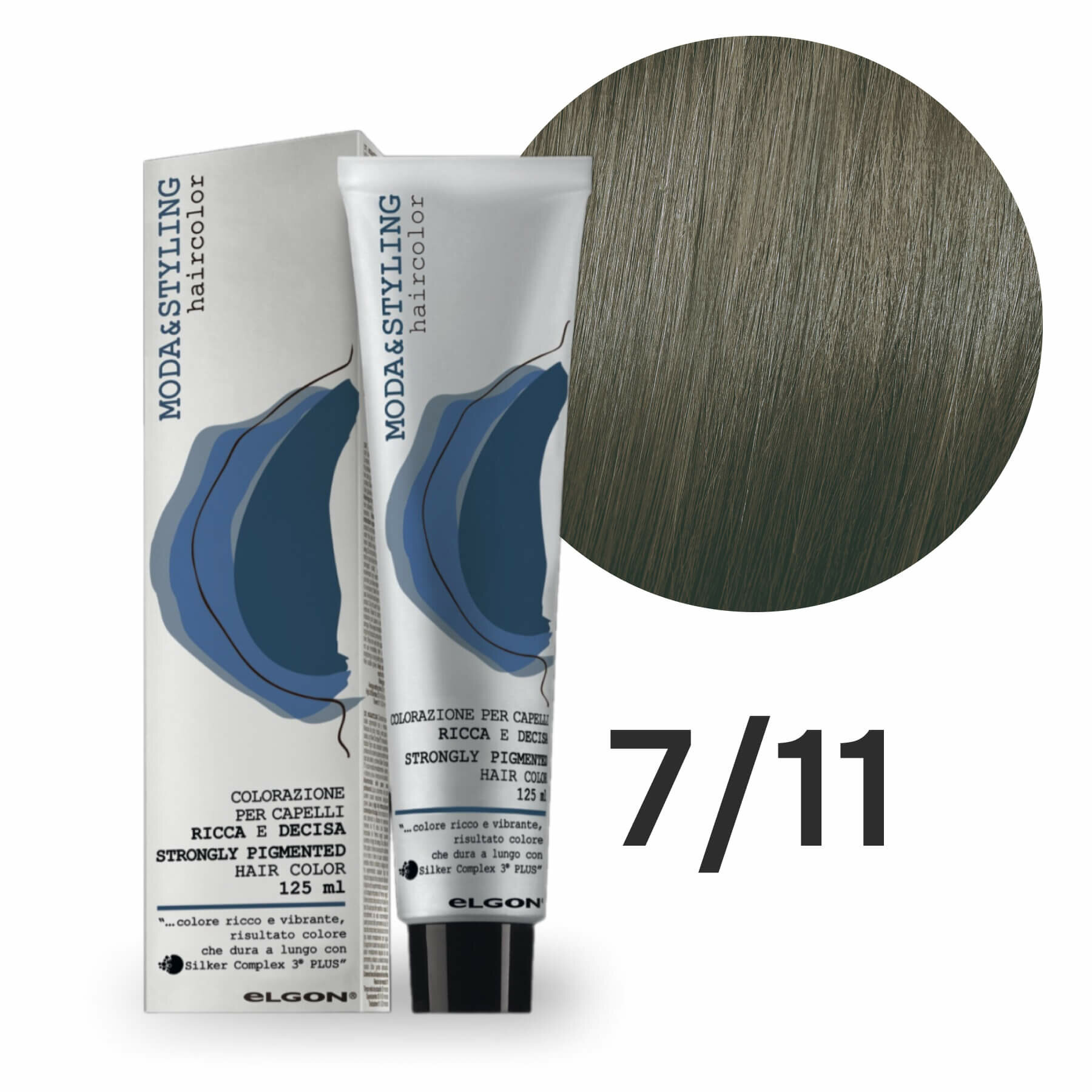 Крем - краска для волос профессиональная Elgon Moda&Styling 7/11 Русый Насыщенный пепельный 125 мл информация:
