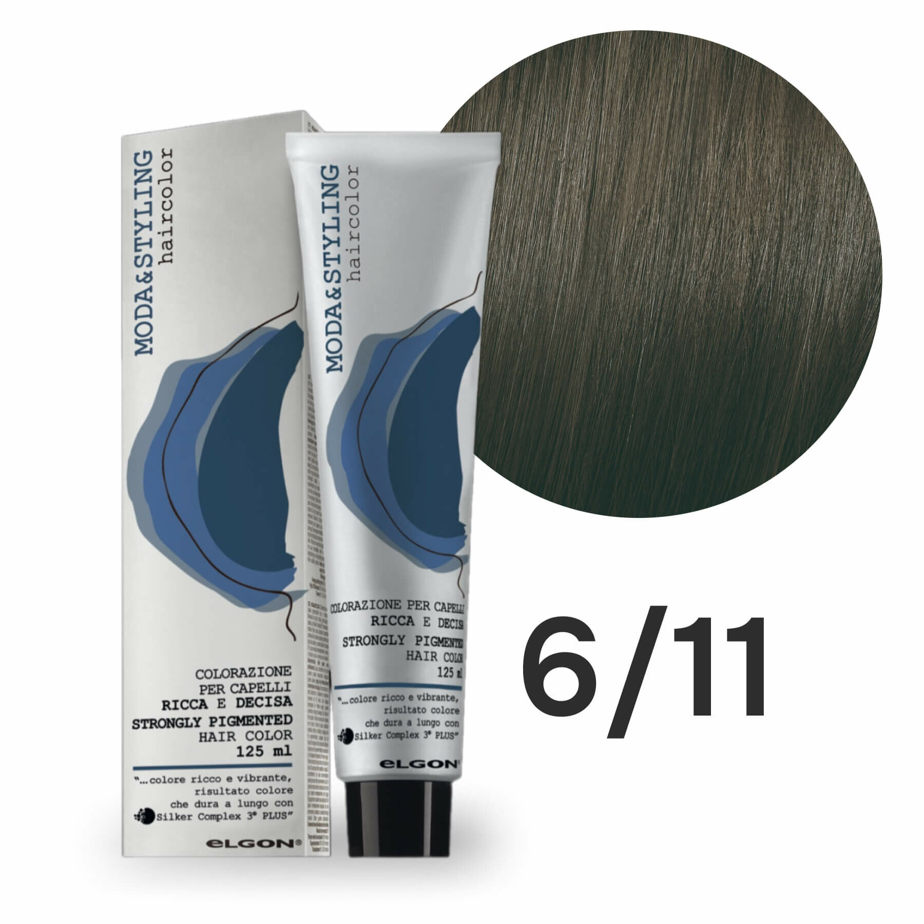 Крем - краска для волос профессиональная Elgon Moda&Styling 6/11 Тёмный русый Насыщенный пепельный 125 мл информация: