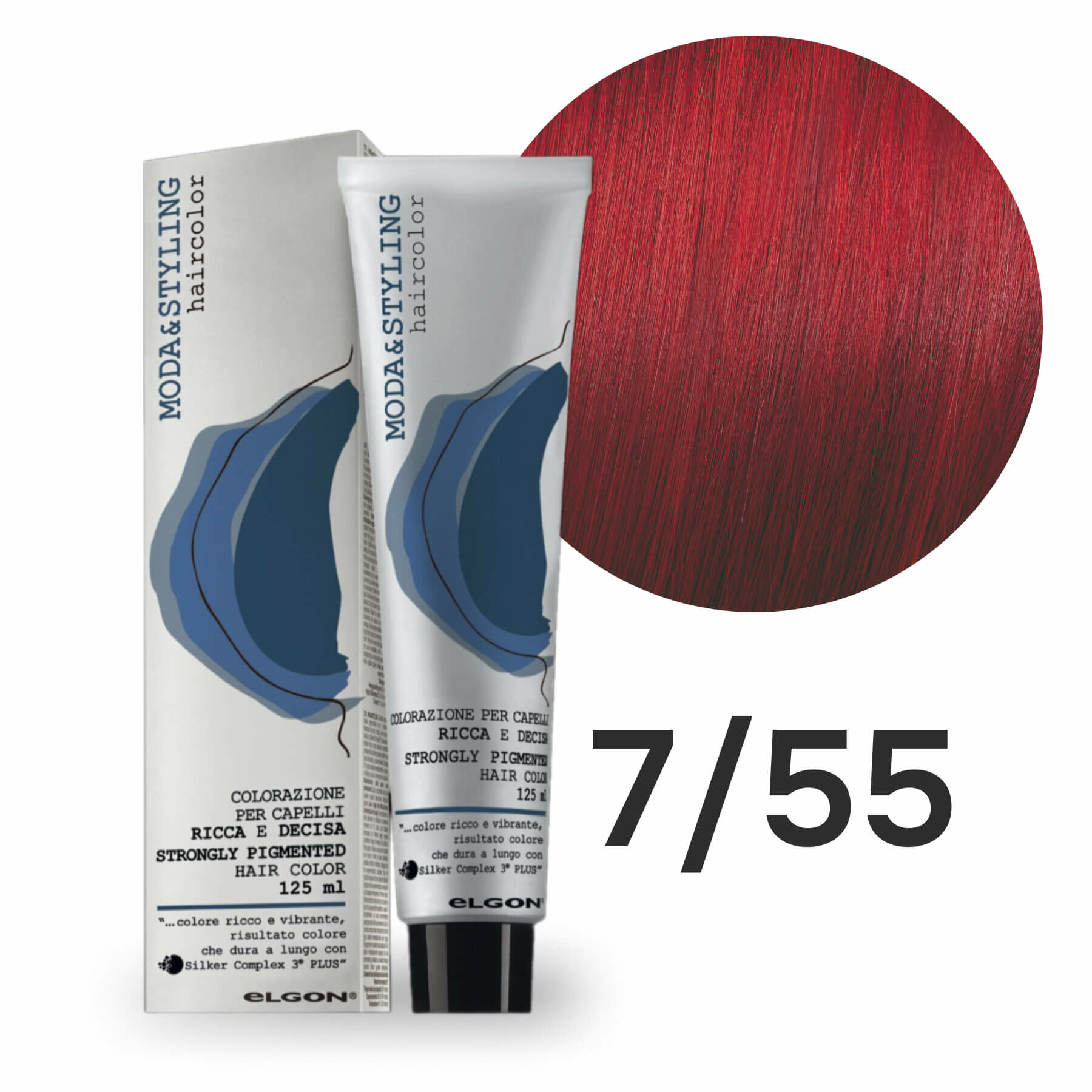 Крем - краска для волос профессиональная Elgon Moda&Styling 7/55 Русый Насыщенный красный 125 мл информация: