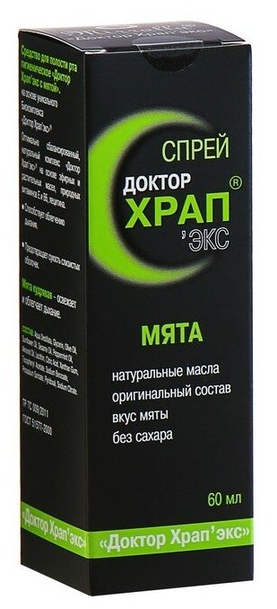 Доктор Храп Экс, средство для полости рта, спрей с мятой 60 мл. информация: