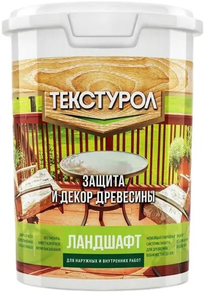 Защита и Декор Древесины Текстурол Ландшафт 0.9л Серый, Матовая, Алкидно-Акриловая для Внутренних и Наружных Работ. 848 ₽