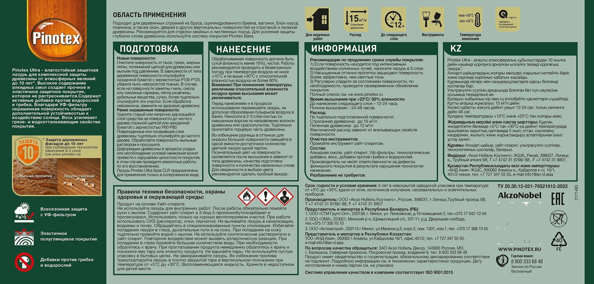Лазурь влагостойкая PINOTEX ULTRA RU ореховое дерево 0,9 л информация: