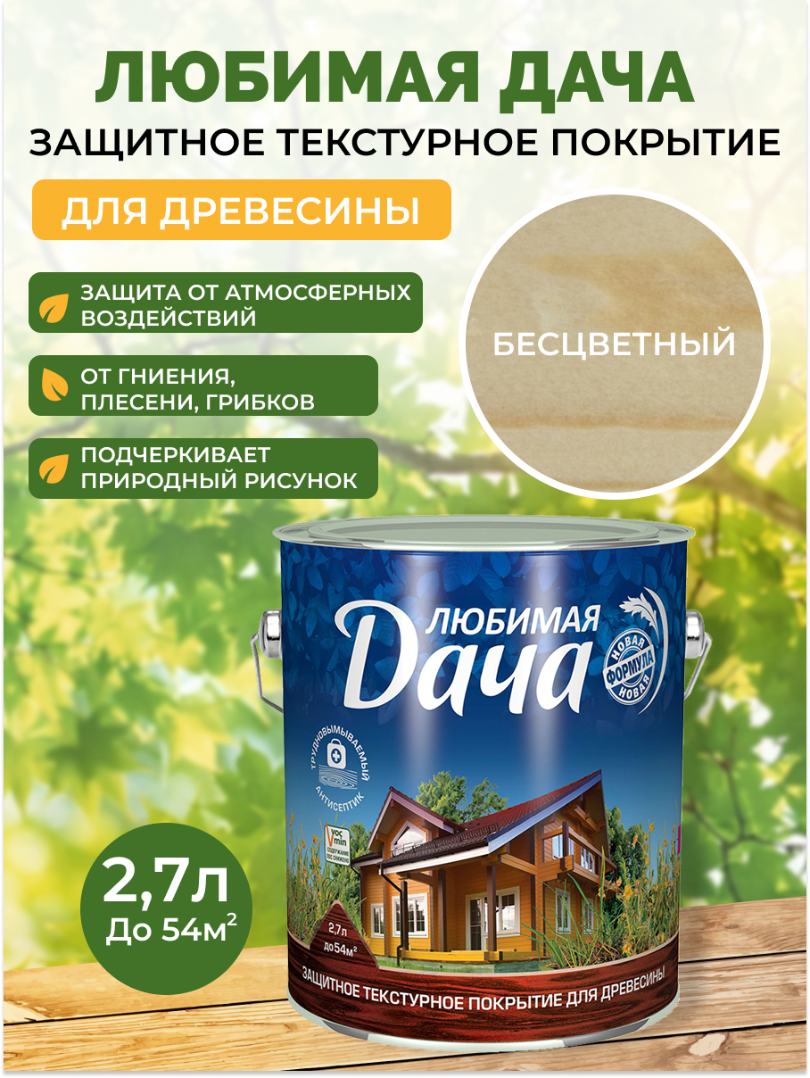 Любимая дача Защитно-декоративное покрытие для древесины, бесцветный, 2,7 л 0298 информация: