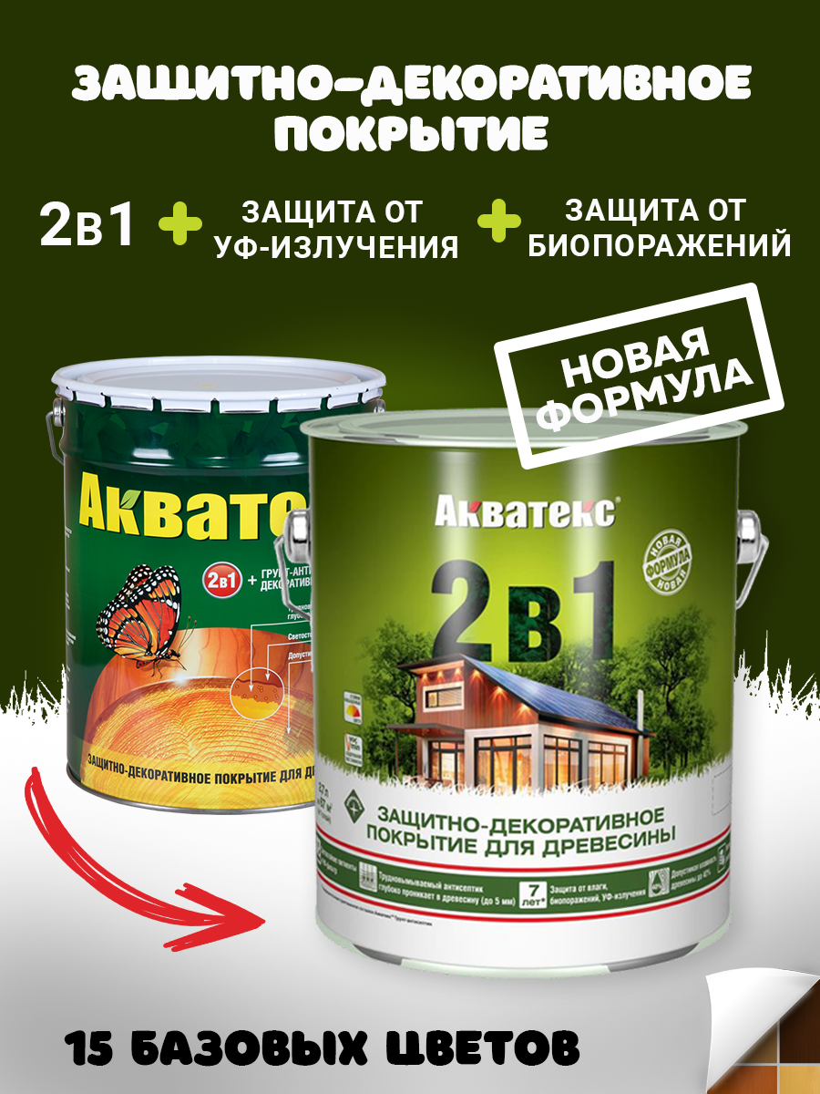 Защитно-декоративное Акватекс покрытие для древесины, пропитка по дереву, 2в1, орегон, 2,7 л 1 699 ₽