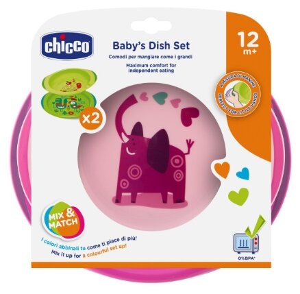 Набор тарелок Chicco 00016002100000, 12 мес.+, 2 шт., розовый