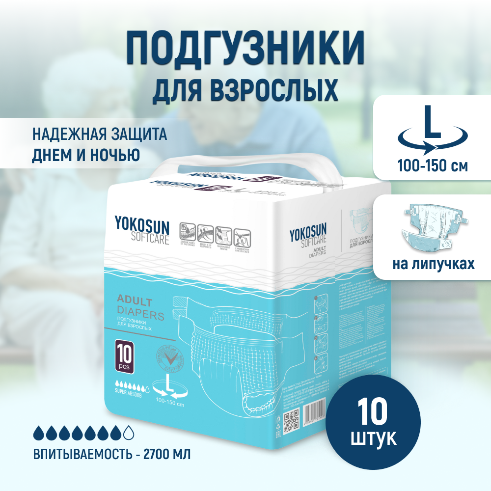 10 цен на Подгузники для взрослых YokoSun Softcare на липучках, размер L, 10 шт.