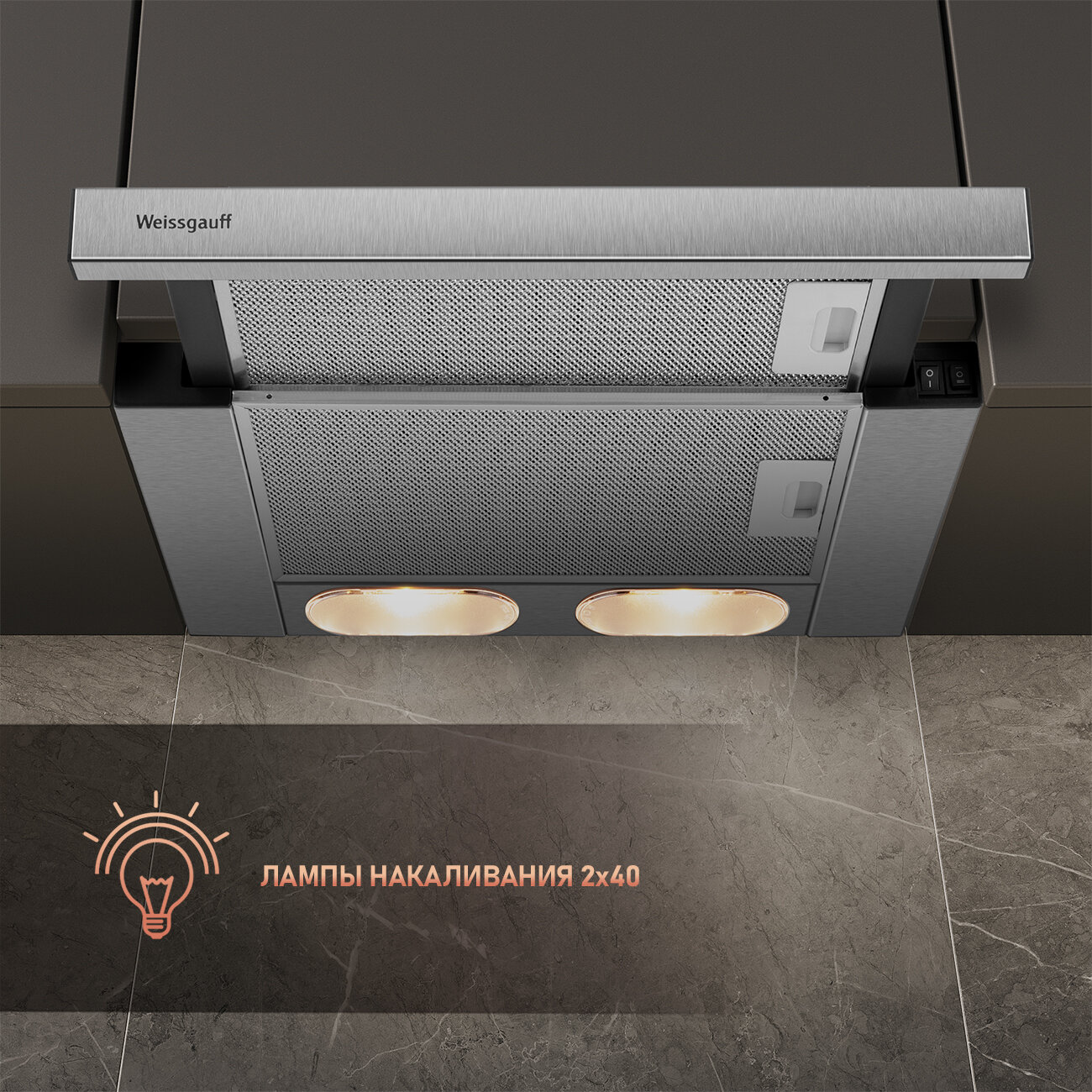 Кухонная встраиваемая вытяжка Weissgauff TEL 450 X 3 года гарантии, Алюминиевый жировой фильтр, Низкий уровень шума информация: