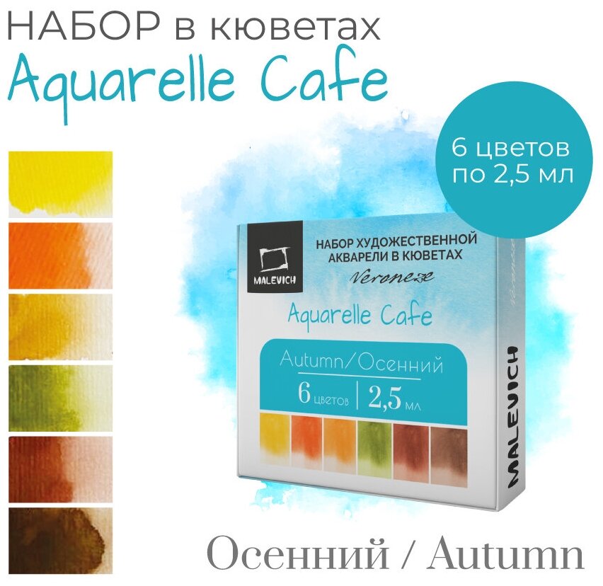 Набор художественной акварели в кюветах Veroneze Осенний 2,5 мл, 6 цветов, акварельные краски для рисования информация: