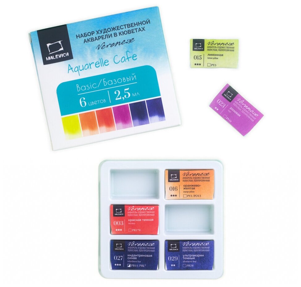 Отзывы на Набор художественной акварели в кюветах Veroneze Basic 2,5 мл, 6 цветов, акварельные краски для рисования
