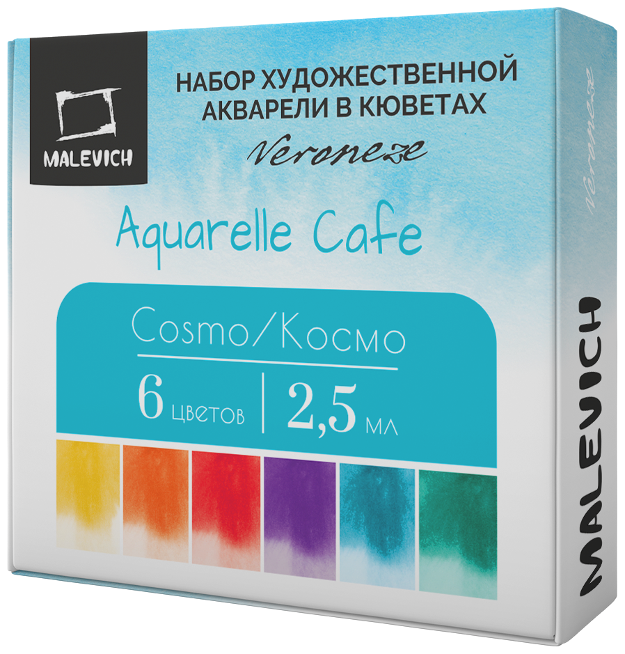 Набор художественной акварели в кюветах Veroneze Cosmo 2,5 мл, 6 цветов, акварельные краски для рисования информация:
