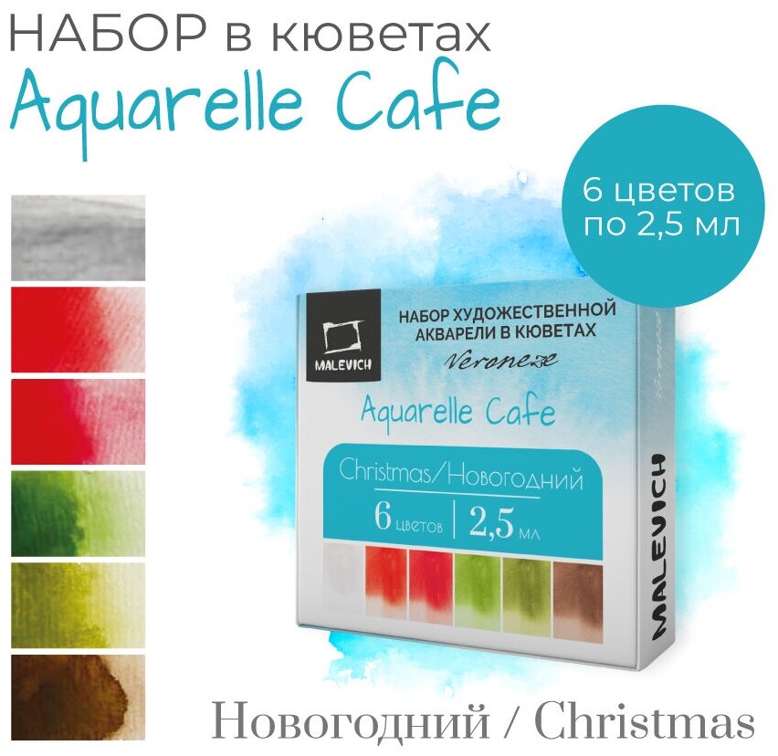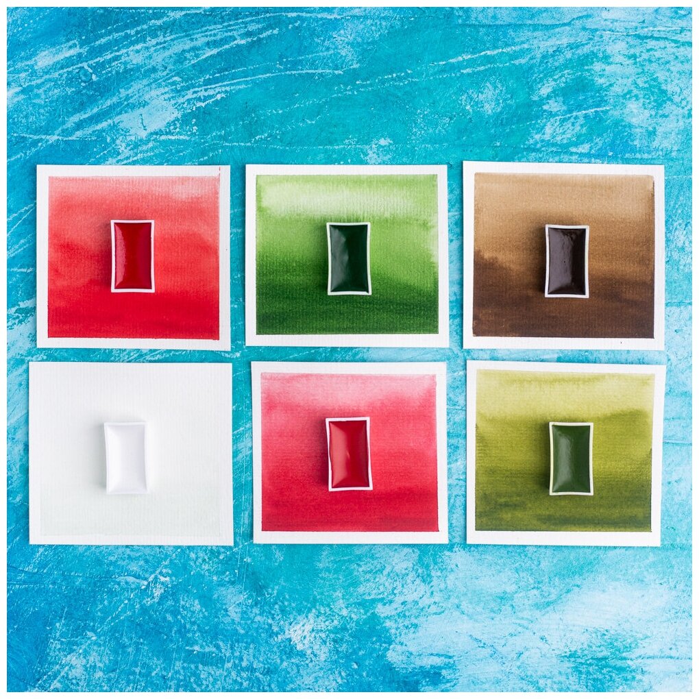 Набор художественной акварели в кюветах Veroneze Новогодний 2,5 мл, 6 цветов, акварельные краски для рисования информация: