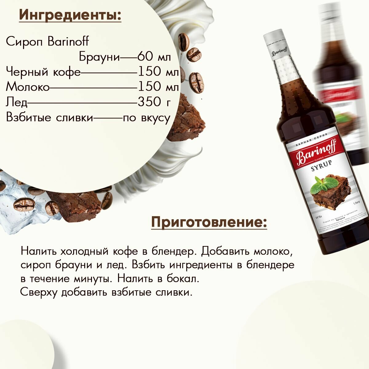 Сироп Barinoff Брауни (для кофе, коктейлей, десертов, лимонада и мороженого), 1л информация: