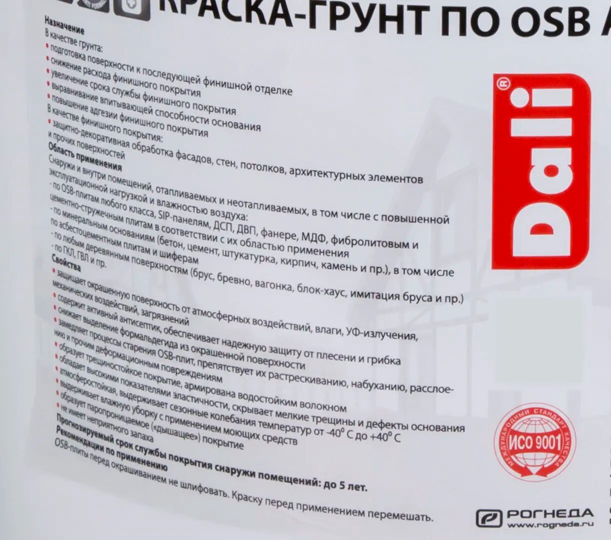 Краска-грунт DALI по OSB армированная, база А, белый, 12 кг информация: