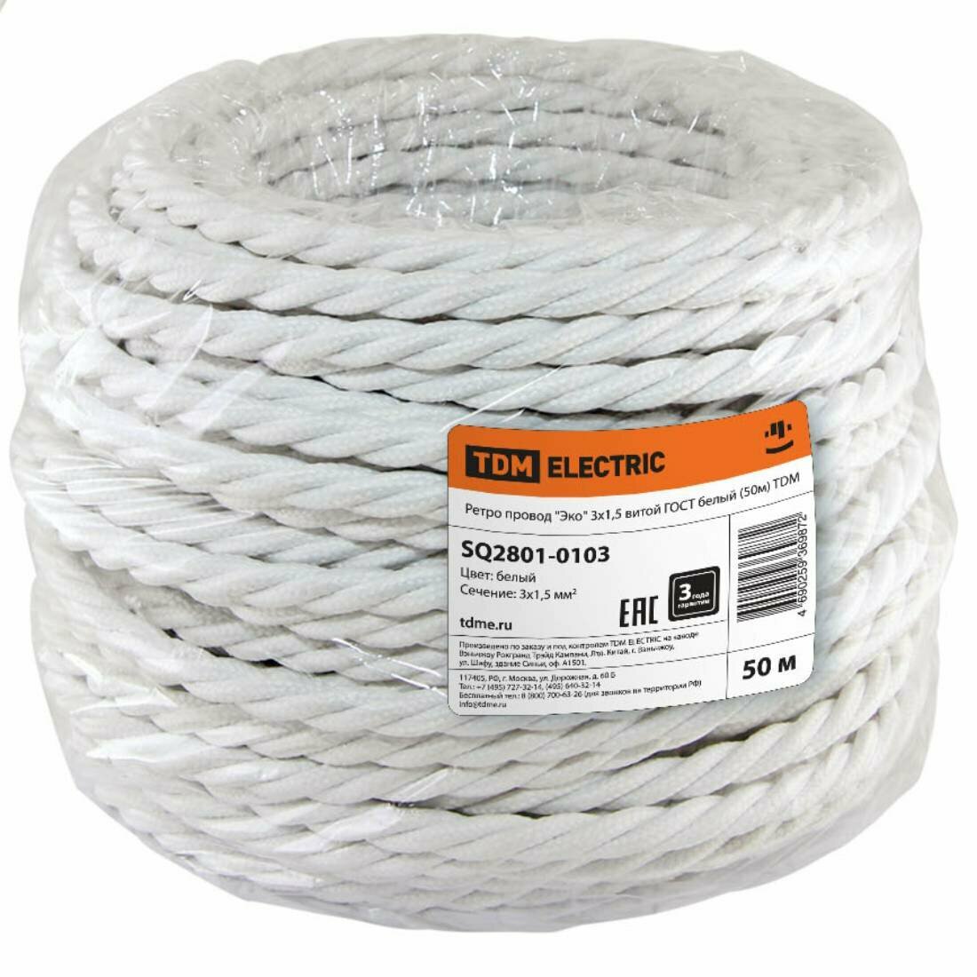 Провод Tdm Electric "Эко" 3х1,5 витой ГОСТ белый (50м), SQ2801-0103 информация: