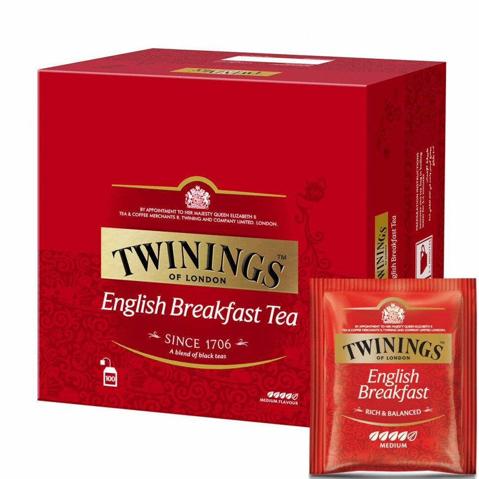 Чай в пакетиках Twinings English Breakfast, 100 шт x 2 г 1 950 ₽