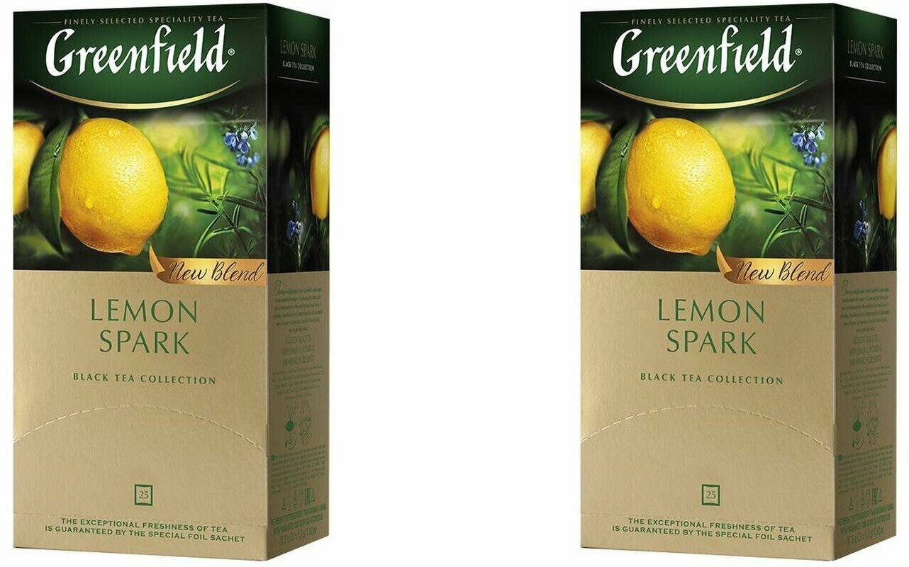 10 цен на Чай черный Greenfield Lemon Spark, с ароматом лимона, 2 упаковки по 25 пакетиков