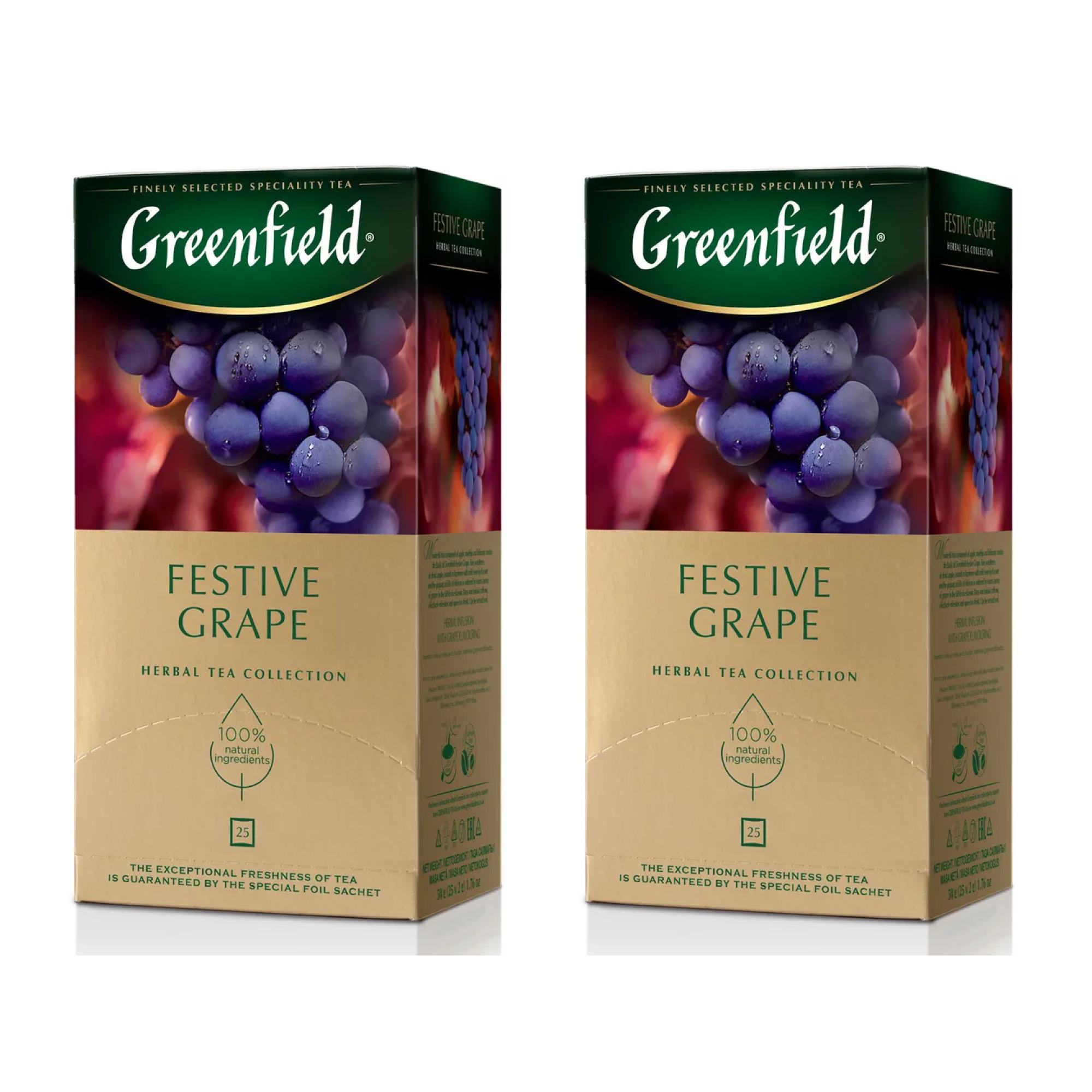 Чайный напиток Greenfield Festive Grape, со вкусом и ароматом винограда, 2 упаковки по 25 пакетиков информация: