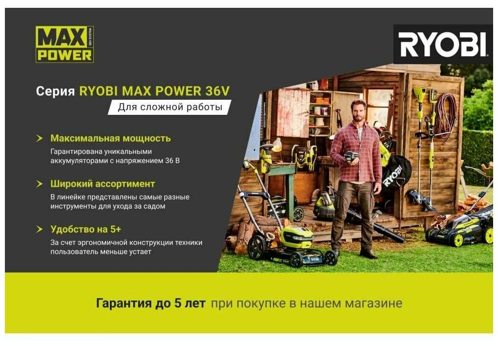 Аккумуляторный садовый пылесос RYOBI RBV36B, 36 В, без АКБ и ЗУ