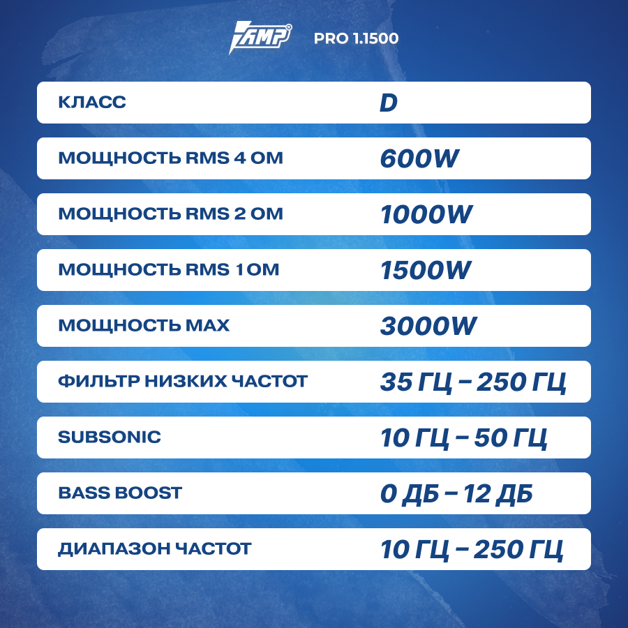 AMP PRO 1.1500 Усилитель мощности звука информация: