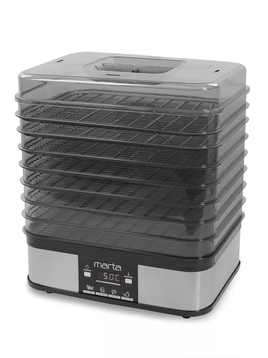 Дегидратор сушилка для овощей электросушилка MARTA MT-FD1889C 8 поддонов (6 основных + 1 для пастилы + 1 для ягод) черный жемчуг