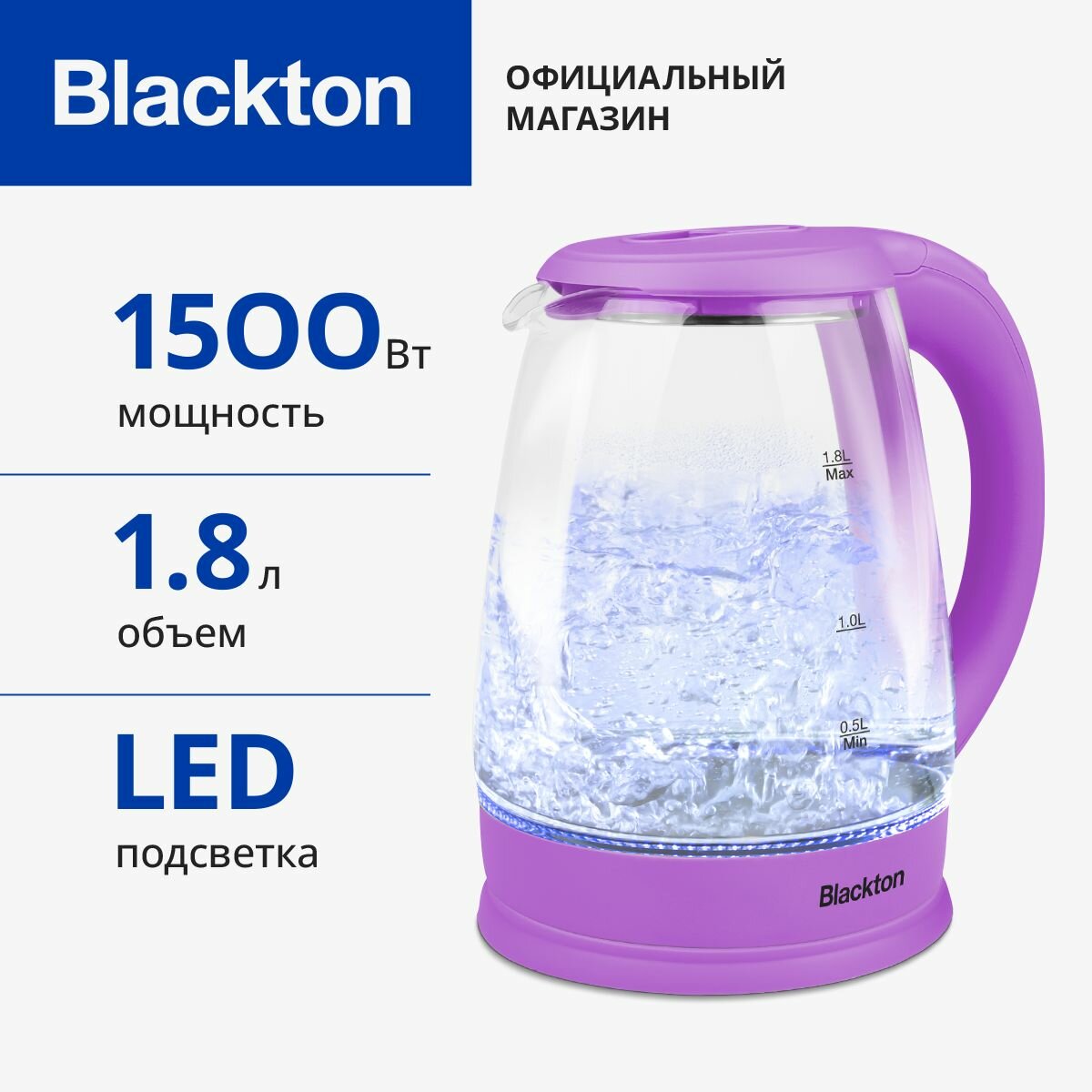 Чайник электрический Blackton Bt KT1800G Фиолетовый / Стеклянный / 1.8 л 1500 Вт информация: