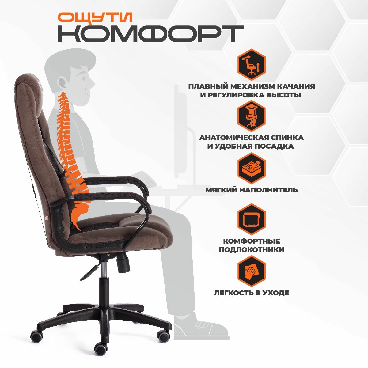 Кресло DRIVER (22) флок/ткань, коричневый, 6/TW-24 информация: