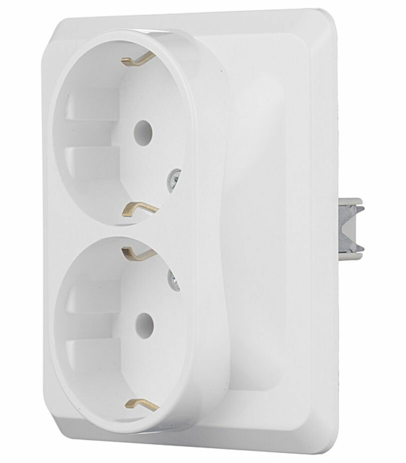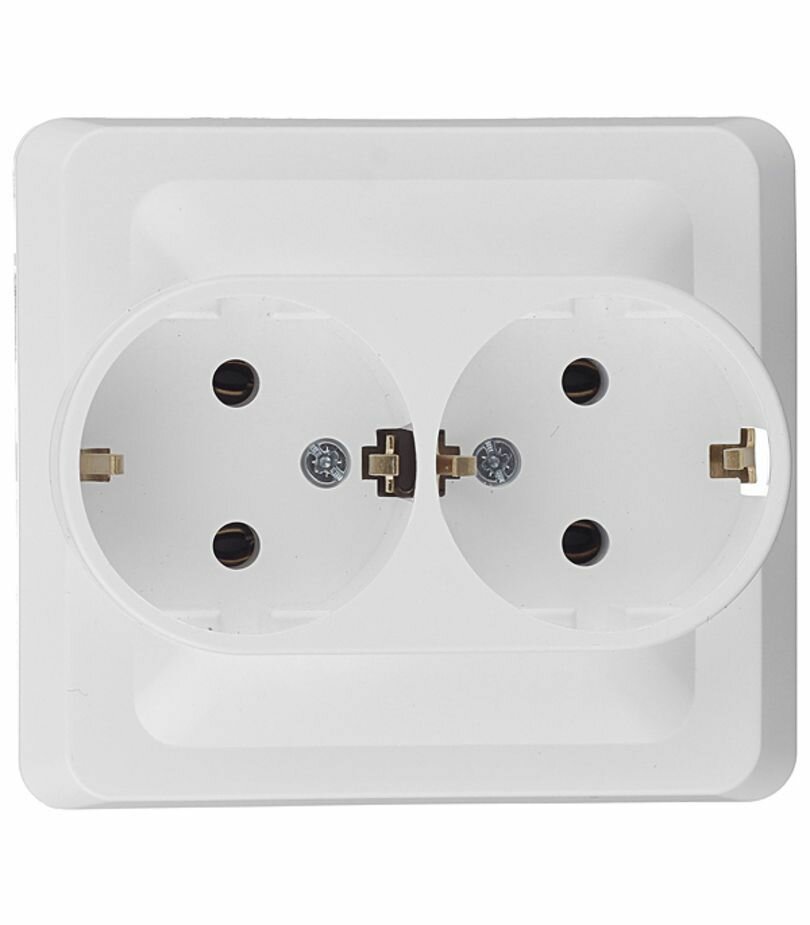 Розетка с рамкой PC16-007B двойная скрытая установка белая с заземлением (2 шт.)
