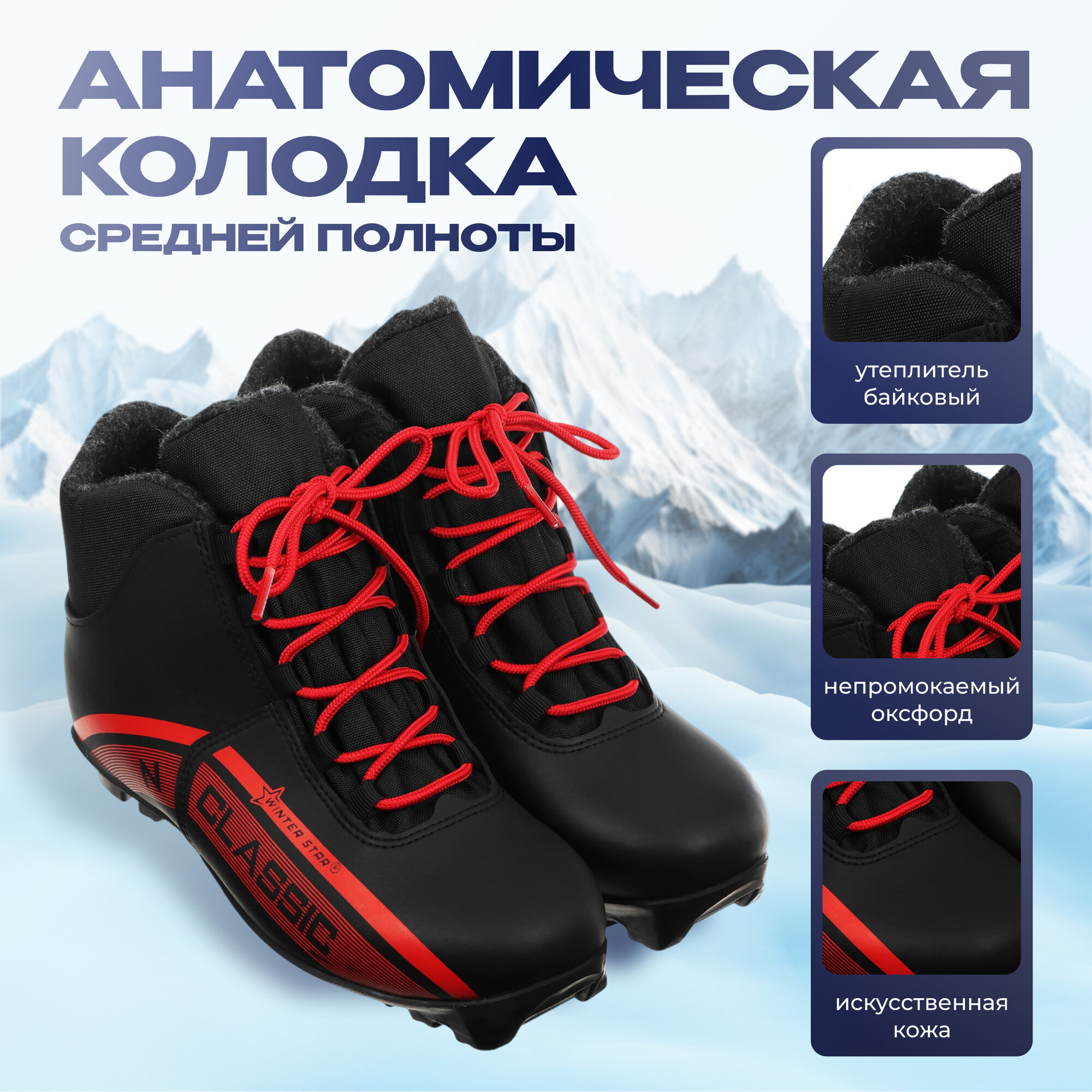Ботинки лыжныеWinter Star classic, цвет чёрный, лого красный, N, размер 35