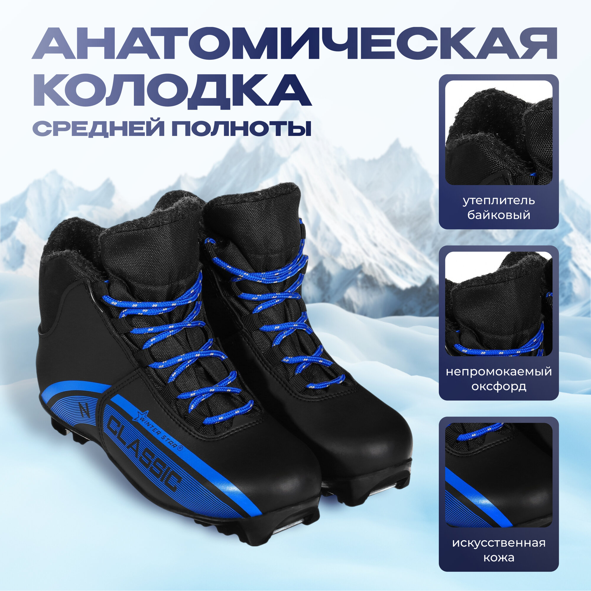 Ботинки лыжные Winter Star classic, NNN, размер 35, цвет чёрный, синий 2 474 ₽