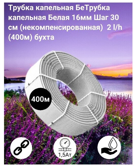 Трубка капельная Белая 16мм Шаг 30 см (некомпенсированная) 2 l/h (400м) информация: