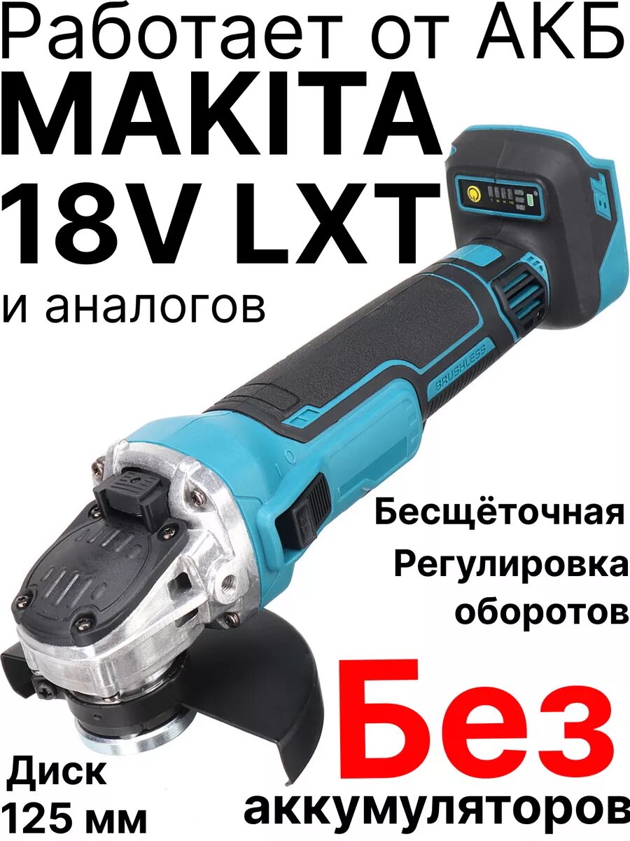 Угловая шлифовальная машина УШМ, болгарка, регулировка оборотов, бесщеточная, без АКБ и ЗУ, совместима с АКБ Makita 18V LXT