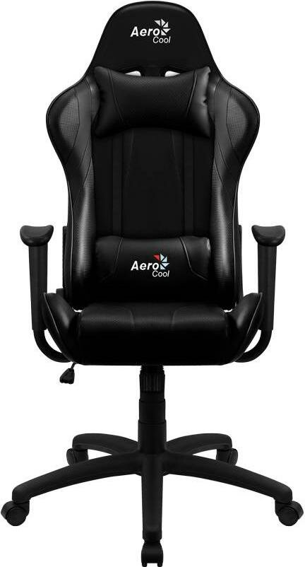 Игровое кресло Aerocool AC100 AIR All black (<150кг, перфорированный ПУ, 2 подушки, фикс. подлокотни