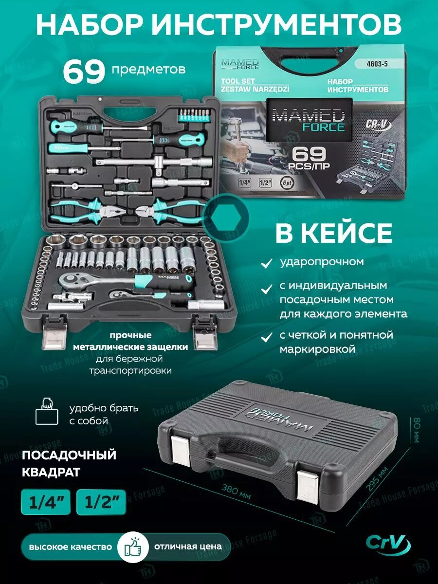 Набор инструментов MAMEDFORCE 82 предмета (классический 1/4,1/2) MF-4821-5 7 474 ₽