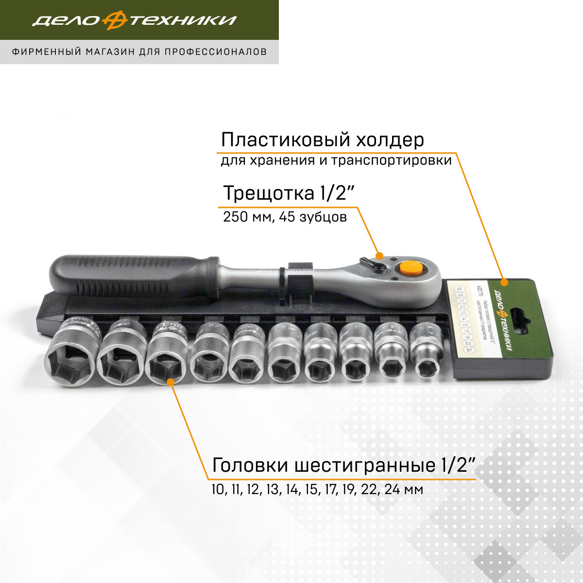 Дело техники 620711 набор головок 6-гр. с трещоткой 1 / 2 11 пр.(10 11 12 13 14 15 17 19 22 24)дт / 12 / 6 3 183 ₽