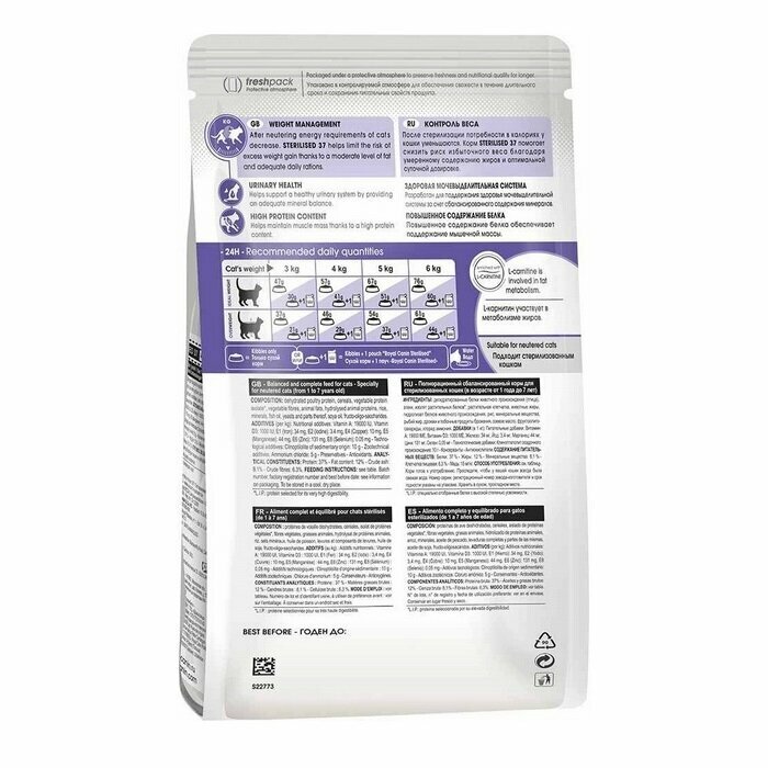 ROYAL CANIN STERILISED 37 2 кг корм для стерилизованных кошек с 1 до 7 лет информация: