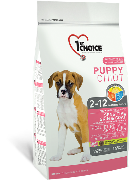 1ST CHOICE PUPPY ALL BREEDS SENSITIVE SKIN & COAT для щенков всех пород при аллергии с ягненком, рыбой и рисом (2,72 кг)