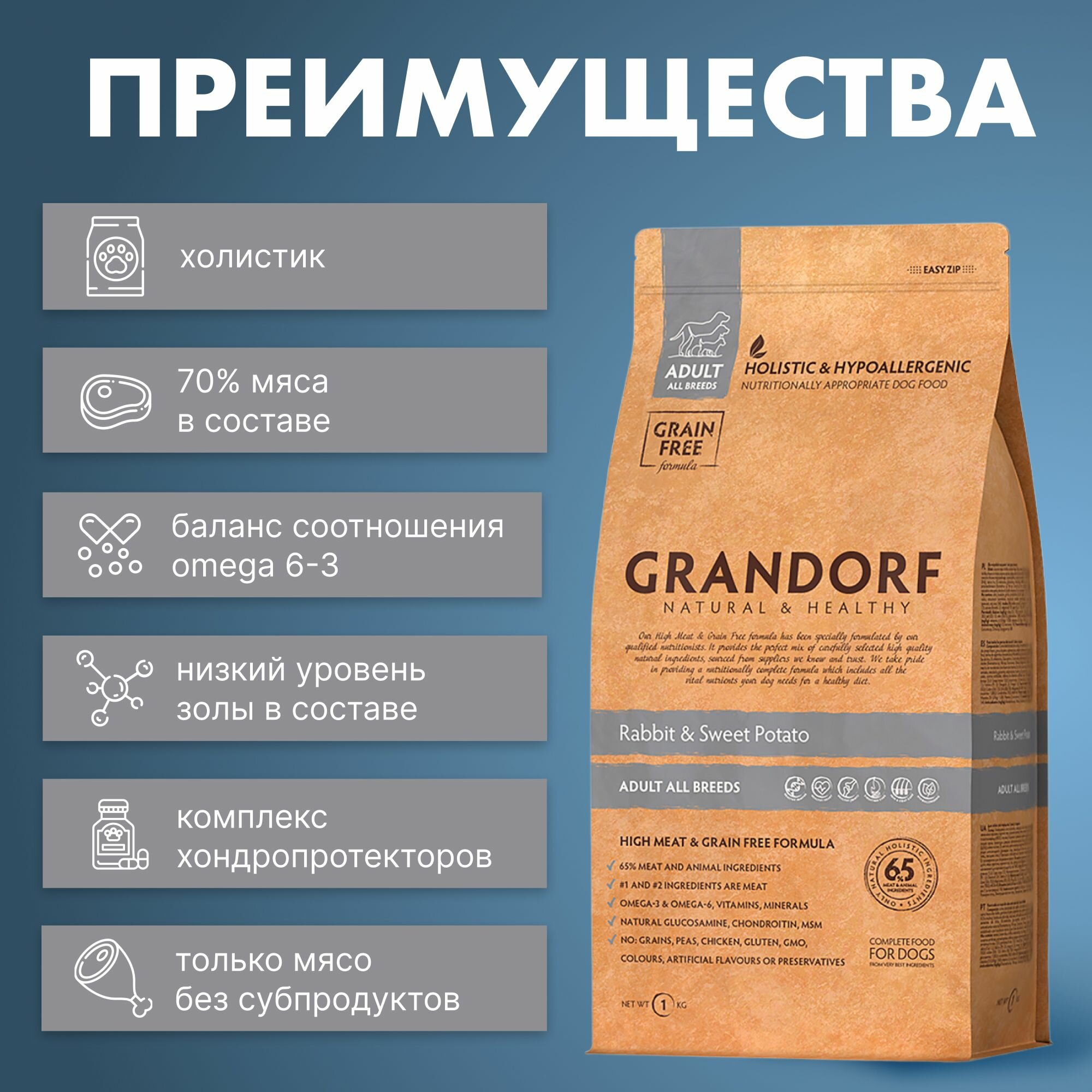 10 цен на Корм сухой Грандорф для средних и крупных пород собак Кролик с индейкой 1 кг