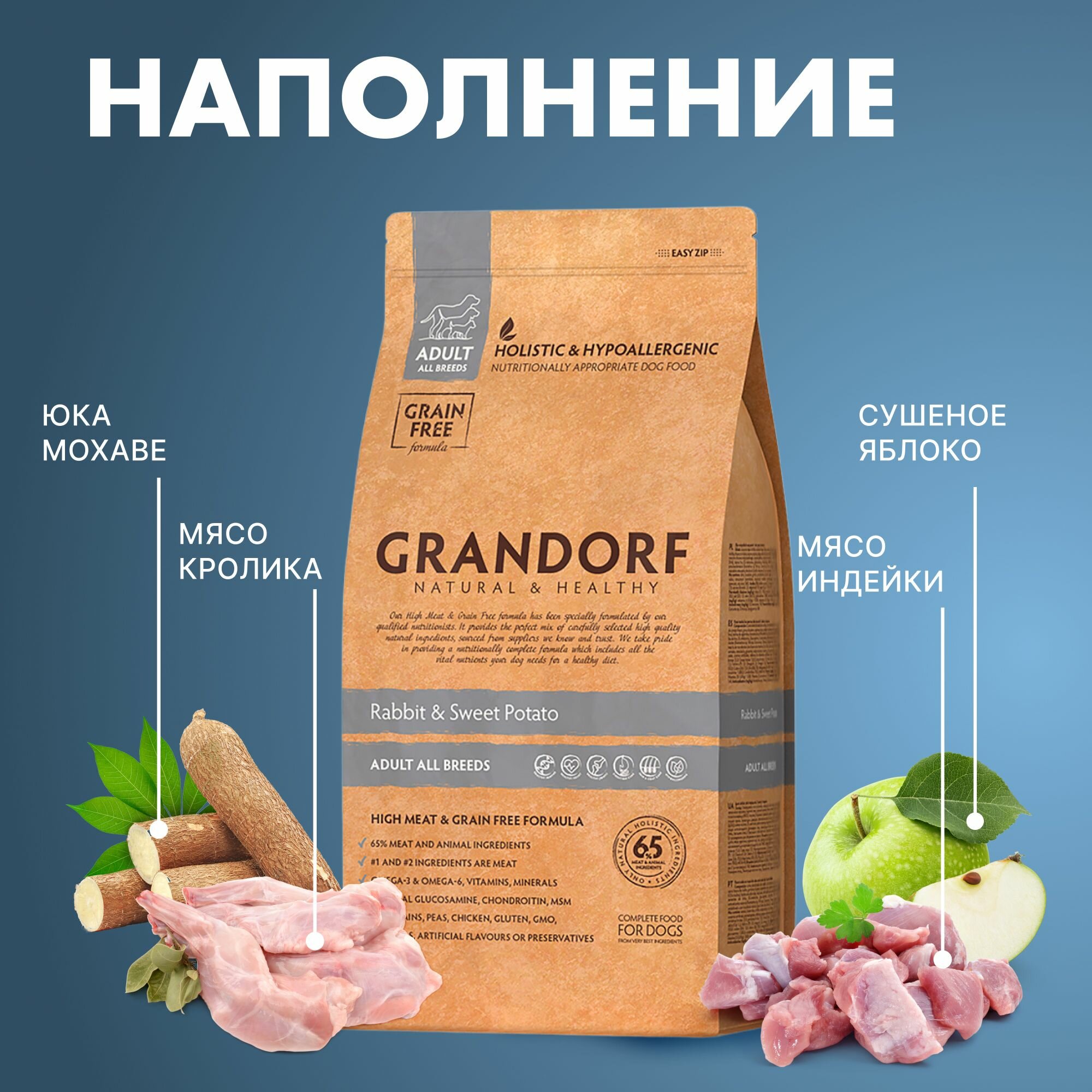 Корм для собак сухой для средних и крупных пород Grandorf кролик с индейкой, 3 кг 4 703 ₽