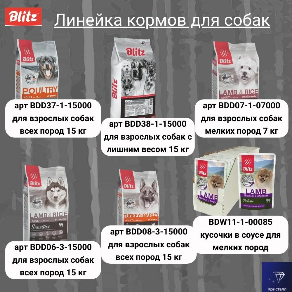 10 цен на Блитц корм для взрослых собак всех пород с лишним весом индейка и рис 15 кг BLITZ
