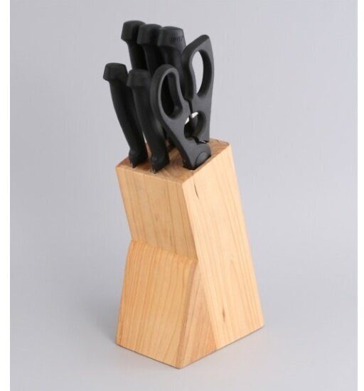 | Комплектация | нож для овощей 9 см, нож универсальный 12 см, нож разделочный 20 см, нож для хлеба 20 см, нож поварской 20 см, ножницы для птицы 20,5 см, подставка |