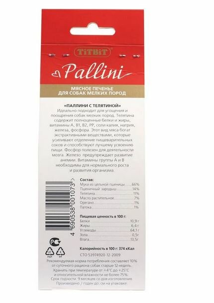 Титбит 001073 Лакомство для собак мелких пород Pallini Печенье c Телятиной 125г