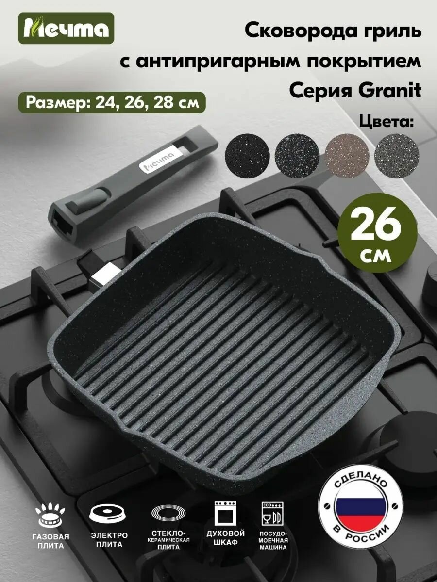 Сковорода-гриль мечта посуда мечта Гранит black, квадратная, съемная ручка, 26 см