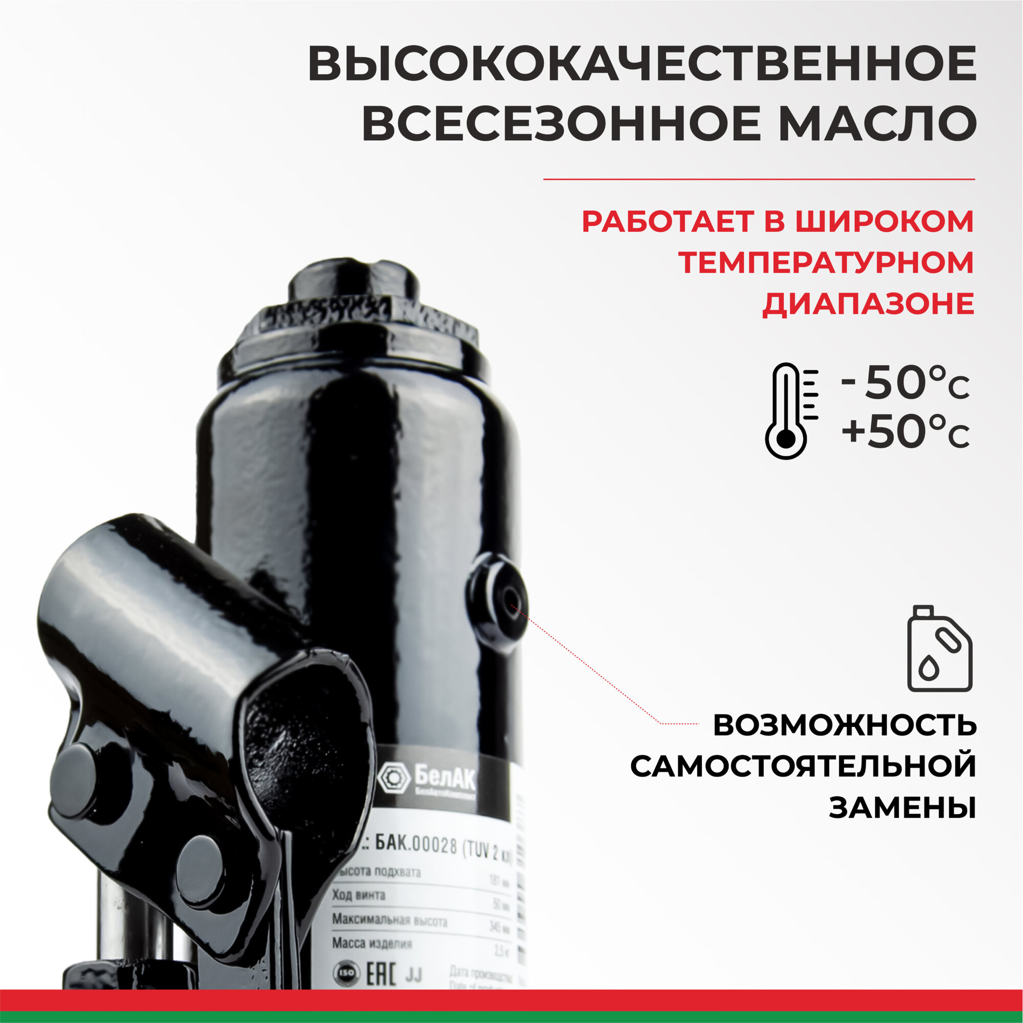 БАК00027 белавтокомплект Домкрат 3 тонны (TUV, 2 клапана) "БелАК" (160мм-285мм) информация: